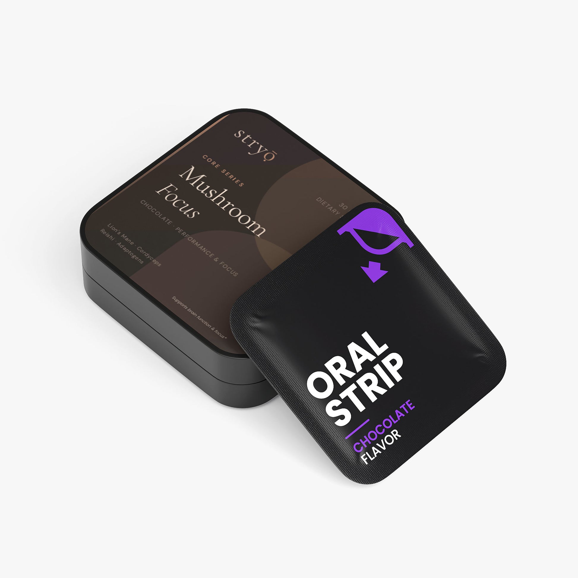 Peak performance, powered by nature. Lion's Mane + Cordyceps + Reishi in a fast-dissolving chocolate-flavored strip. Your daily mushroom ritual in 30 seconds.*